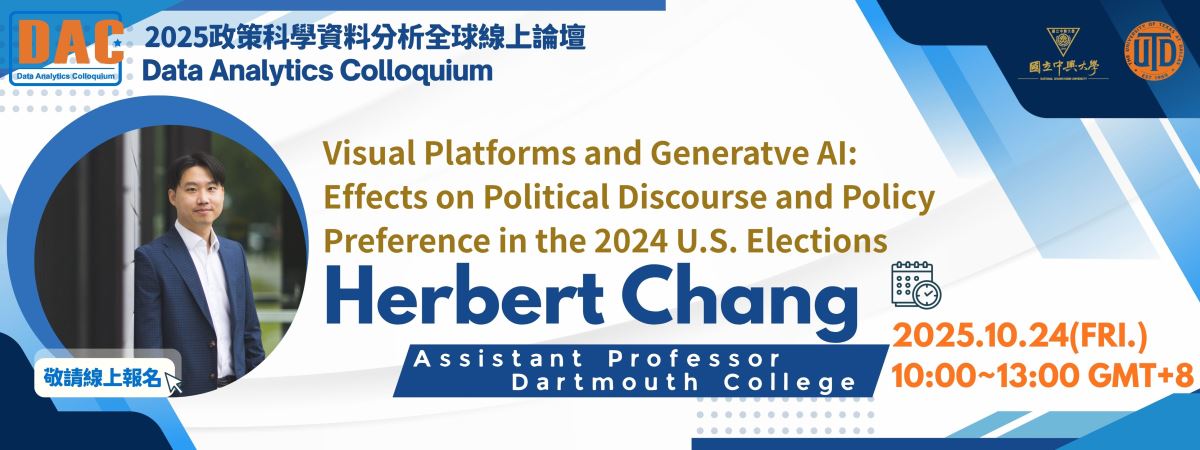 【114.10.24】 政策科學資料分析全球線上論壇~2025系列講座 Visual Platforms and Generatve AI: Effects on Political Discourse and Policy Preference in the 2024 U.S. Elections