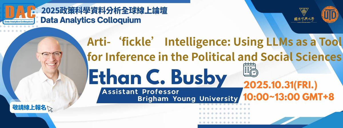 【114.10.31】 政策科學資料分析全球線上論壇~2025系列講座 Arti-‘fickle’ Intelligence: Using LLMs as a Tool for Inference in the Political and Social Sciences